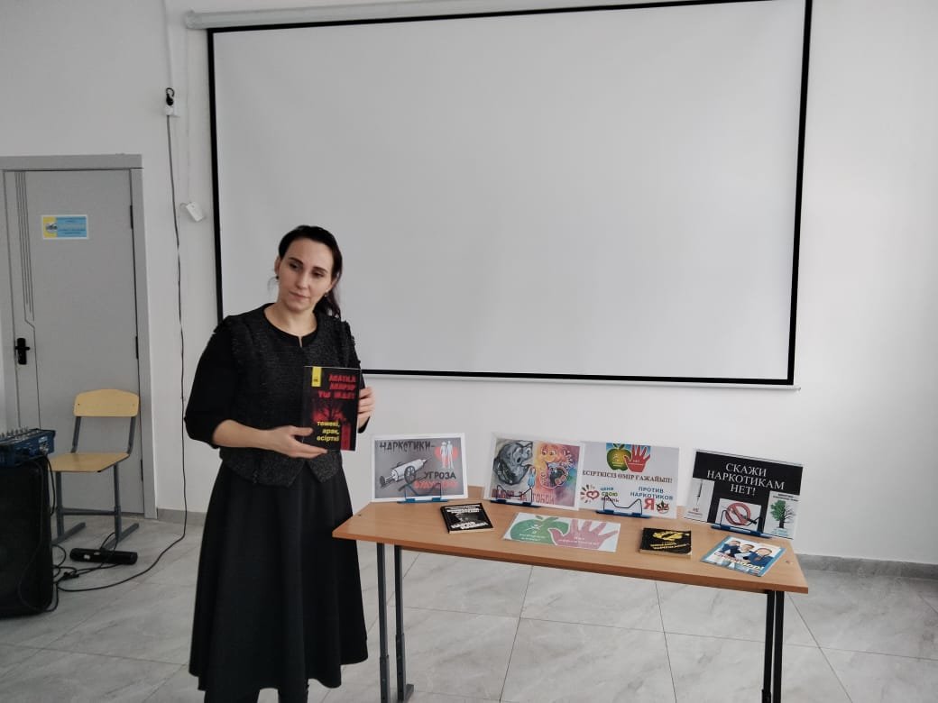 Есірткіге қарсы күресуге, жастар арасында денсаулыққа жауапкершілікпен қарауды қалыптастыруға және зиянды әдеттердің алдын алу мақсатында модельдік орталық аудандық кітапхана маманы №1 жалпы білім беретін меткебінің 9 сынып оқушыларымен «Есірткісіз өмір – жарқын болашақ» тақырыбында ақпараттық SOS сағатын өткізді. Іс-шара барысында тақырып бойынша бейнероликтер көрсетіліп, нақты өмірлік жағдайлар талқыланды. Қатысушыларға есірткінің ағзаға әсері, қоғамға тигізетін зияны және тәуелділіктің психологиялық және әлеуметтік салдары туралы фактілер ұсынылды. Кездесу жастарды зиянды әрекеттерден сақтандыруға бағытталды.